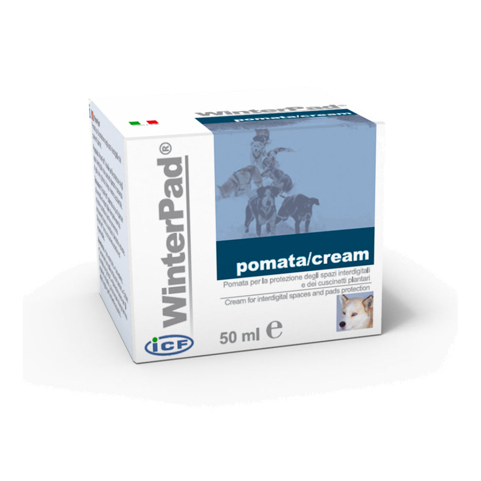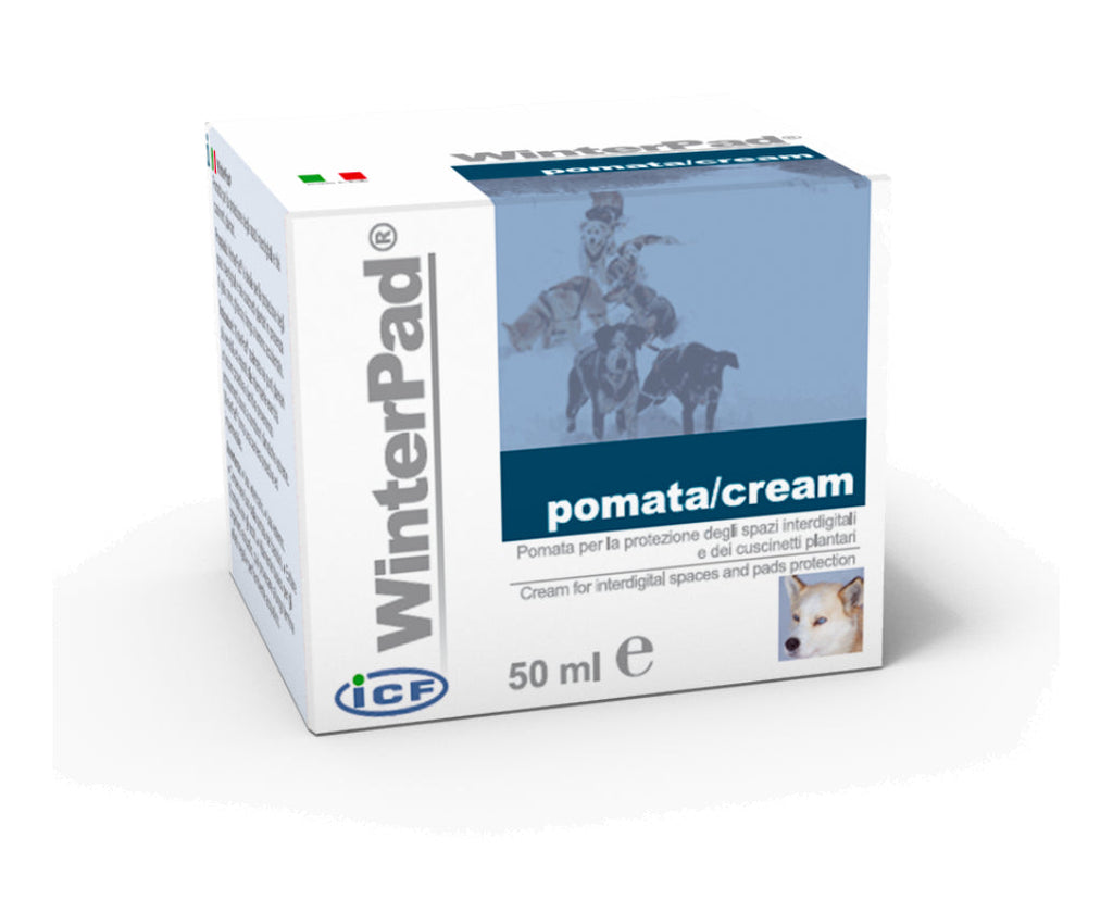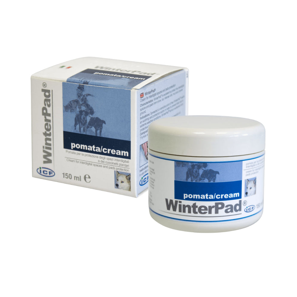 Winterpad van ICF is een zalf die kan worden aangebracht op de voetzooltjes van honden, om een beschermende waterafstotende barrière te vormen. Het product is vooral geschikt voor jacht- en werkhonden. Het kalmerende effect op de huid voorkomt roodheid en irritatie. De zalf heeft een bittere smaak om te voorkomen dat honden eraan gaan likken.